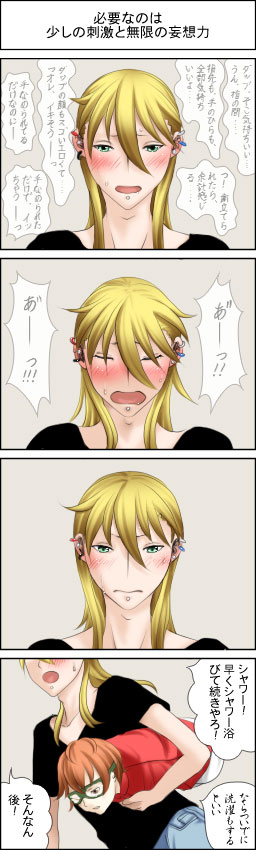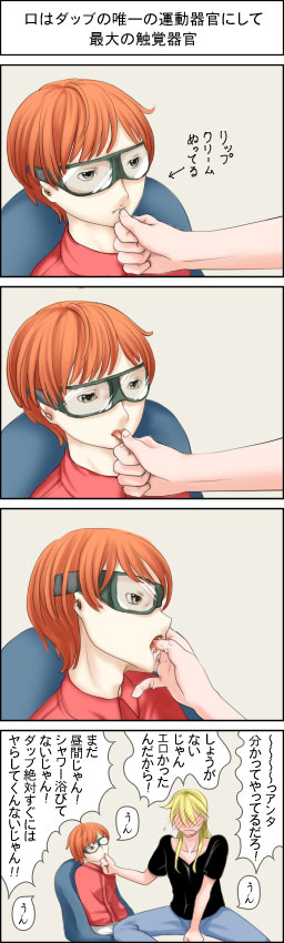 1.(クリーム塗るためだけど、よく考えれば、唇触るのってエロいよなー。前ダッブ、唇は一番敏感だって言ってたし。………………いっつも、この口でオレの……)