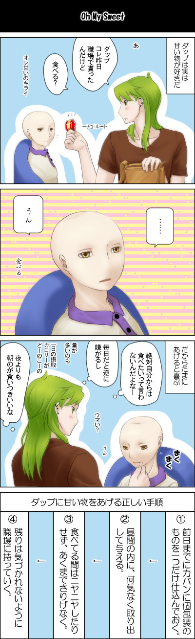 ダッブにとってお菓子はまさに嗜好品で、好きだけど、食べると太るし歯磨きしなきゃいけないしで、人の迷惑になるから自分から進んで食べることはありません。タイミングによっては、すすめられても拒否する程度。