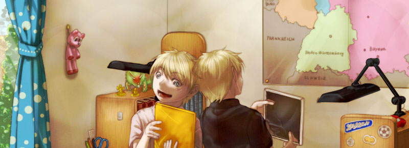 鏡を使ってお互いの顔を見ることを思いついたヤンとレオ。