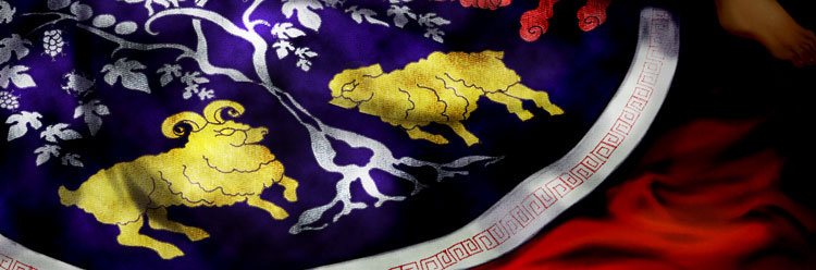 これは、当時のホーゼンウルズ辺境伯領の隆盛を象徴する、金の羊と銀の蚕が縫い表されていることから、明らかである。東洋風に絵柄を変えてはあるが、これらの図版は、実際の東洋では例がない。